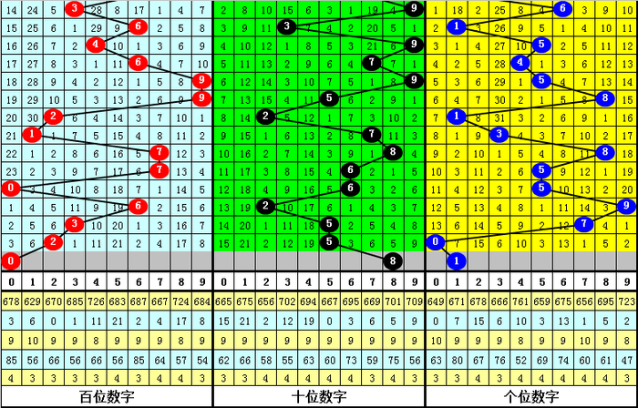 其中,百位奇偶比为3:2,大小比为4:1,本期百位一码参考0。