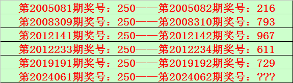 排列三第2024061期开出奖号250,该号码直选类型历史上出现了6次,前5次开出之后期下期奖号为:216、793、967、611、729,见下表: