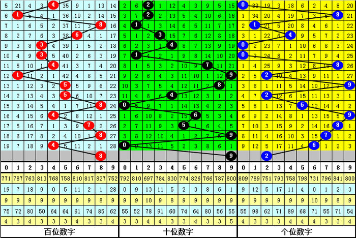 二、百位分析:上期开出号码4,前10次号码4出现之后下期分别开出号码:2992767117,其中号码大小比为6:4,基本持平;奇偶比为7:3,偶数号码表现相对较冷;012路比为3:5:2,2路号码走势非常冷。本期参考号码:8。