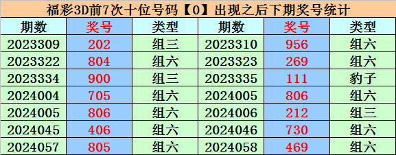 在十位开奖中,号码0前7次出现之后,下期奖号分别为:5、6、1、0、1、3、6,其中奖号奇偶比为4:3,大小比为3:4,012路比为4:2:1。