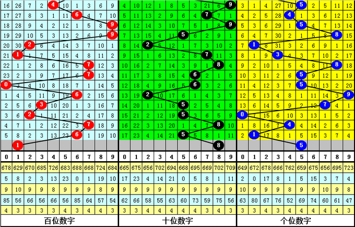 百位推荐:大小号码基本持平,本期放弃大号;近期0、1路号码热出,本期参考号码1。