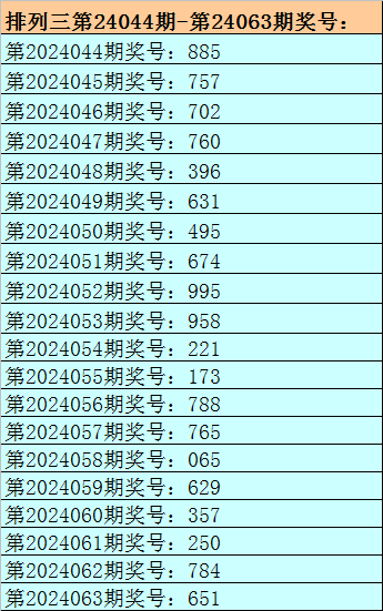 开奖回顾:排列三第2024063期开出奖号:651。其中奖号大小比为2:1,奇偶比为2:1,012路比为1:1:1,和值为12,跨度为5。