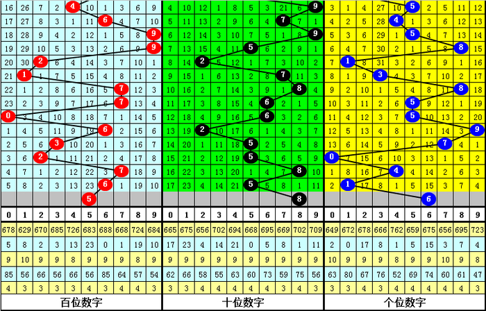 目前百位最冷号码为5,当前遗漏23期,该号码历史最大遗漏为56期,本期百位防号码5解冻。