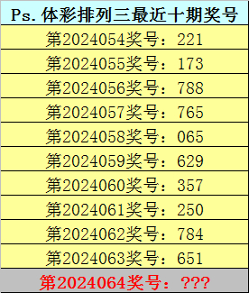 开奖回顾:体彩排列三第2024063期奖号为:651,类型:组六。