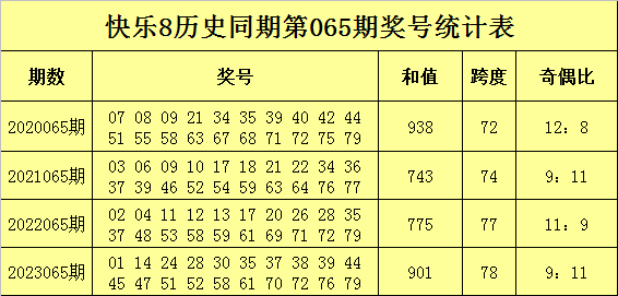 奇偶比分析:去年第065期奖号奇偶比为9:11,历史同期第065期奖号奇偶总比例为41:39,奇偶号码表现与理论基本相当,今年第065期预计奇偶号码表现与理论基本相当,推荐奇偶比9:11。