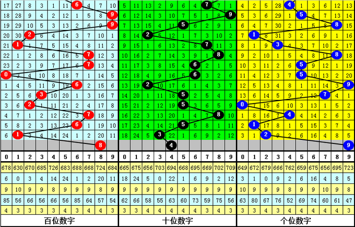 百位上期开出号码1,为奇数,偶数号最近出现次数较少,上期轮空之后,本期注意偶数号码回补,关注号码8。