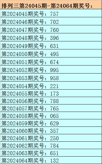 开奖回顾:排列三第2024064期开出奖号:132。其中奖号大小比为0:3,奇偶比为2:1,012路比为1:1:1,和值为6,跨度为2。