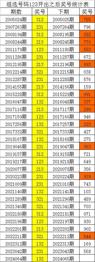 从上表可以看出,组选号码123开出之后,出现次数最多的三个号码分别为:937,本期防这三码中落号;出现次数最少的三个号码分别为:814,本期预计这三个号码不会同时出现,本期杀一码:8。