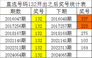 从上表统计可以看出,直选号码132开出之后,其下期奖号: