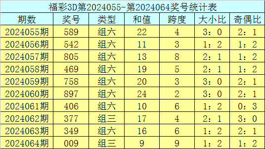 和值分析:和值近期分布较广,上期和值为9,本期看好和值上升,参考和值12。