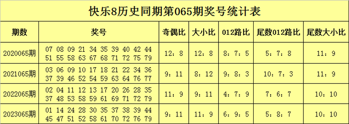 沧海快乐8第2024065期历史同期奖号尾数分析