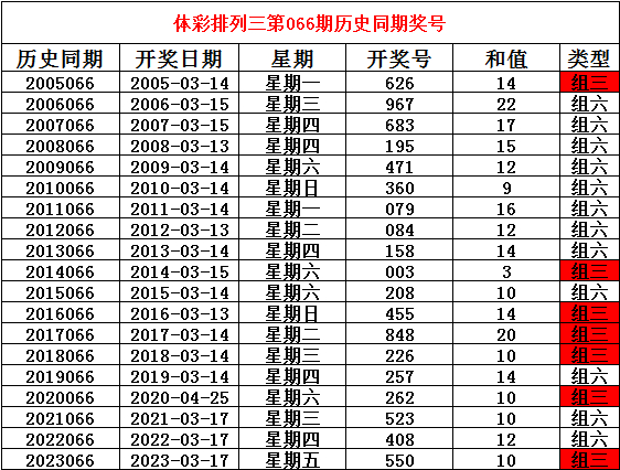 2024年3月16日排列三第066期开奖,历史同期分别开出奖号: