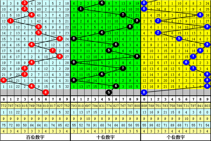 百位上期开出号码4,上升了4个点,本期看好该位继续上升,参考号码6。