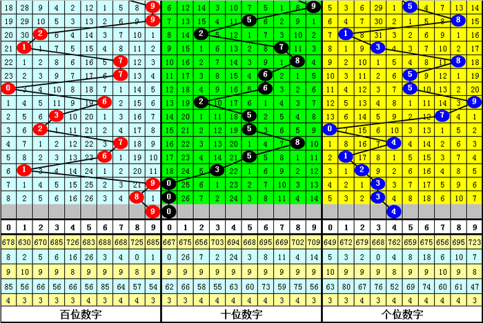 3.在以上9期奖号中,号码012路比分别开出1:2:0、3:0:0、0:0:3、1:0:2、1:0:2、2:0:1、2:1:0、1:1:1、2:0:1,012路出现个数比为13:4:10,本期预计开出012路比2:1:0。