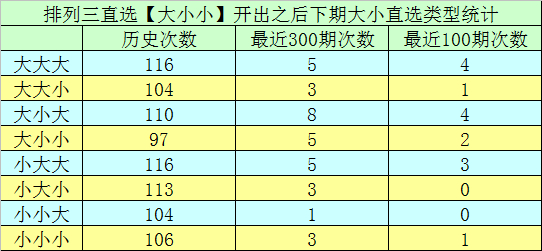 2.在前9次直选【大小小】组合之后,下期开奖号码分别为:197-666-555-259-529-905-760-495-803,豹子包含2期,都是组六。本期奖号排除对子,看好开出组六。