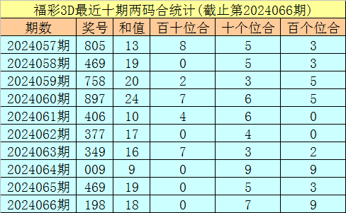 福彩3D第2024067期两位合分析: