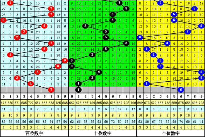 跨度分析:最近5期分别开出跨度:9、8、5、7、3,本期预计跨度走大,一码跨度参考6。