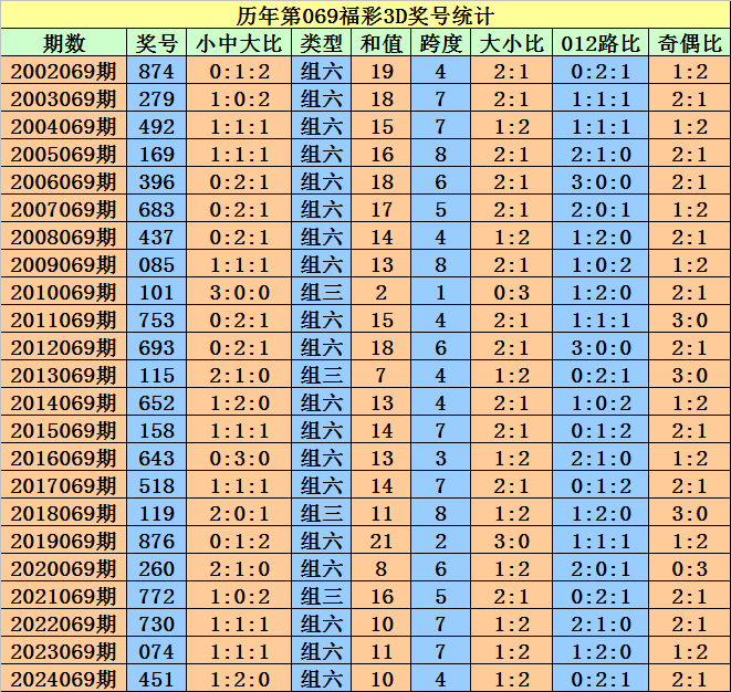 开奖回顾:福彩3D第2024069期奖号为:451。