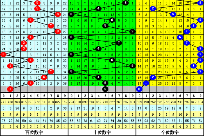 跨度:近5期跨度分布在4-9之间,振幅为6点,分布非常分散,上期跨度为4,重复出现,本期注意跨度走大,关注5区段。