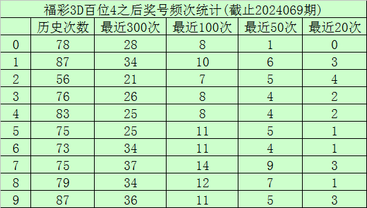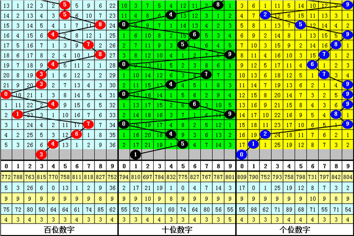 百位杀号:上期百位开出号码4,历史上百位号码4已开出770次了,最近100次百位号码4出现之后,其下期各号码频次分别为:号码7出现14次,8出现12次,5、6、9出现11次,1出现10次,0、3、4出现8次,2出现7次。