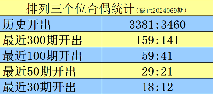 上期回顾:排列三2024069期奖号为411,类型为组三,奇偶比为2:1,大小比为0:3,和值为6。