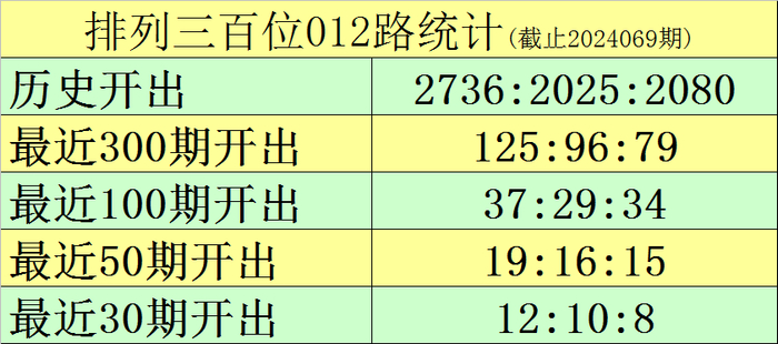 第一位推荐:最近30期该位0路号码开出12个,目前遗漏4期,其中号码0出现1次,目前遗漏11期;号码3出现3次,目前遗漏9期;号码6出现4次,目前遗漏6期;号码9出现4次,目前遗漏4期。