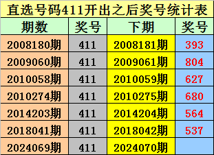 排列三直选411出现之后下期奖号分别为:393-804-627-680-564-537。