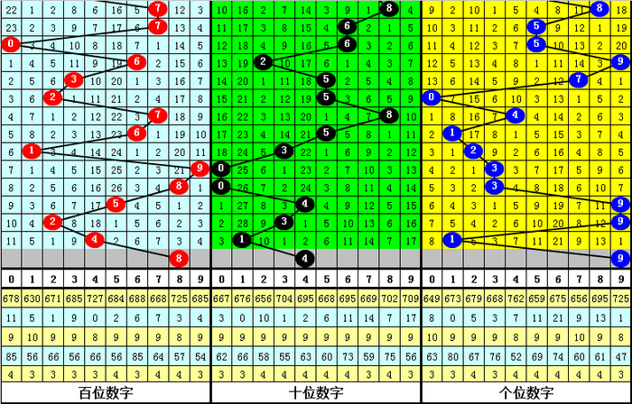 百位上期开出号码4,为偶数,偶数号最近出现次数较少,目前开出2期,逐渐回补,本期防止再次出现,关注8。