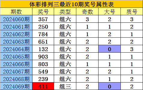 开奖回顾:排列三上期开奖号码为:411,大小比为0:3,奇偶比为2:1,质合比为2:1。