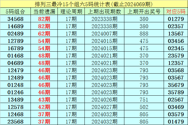 (4)排列三第2024069期遗漏值最大的十个5码组六组合解冻了0个;