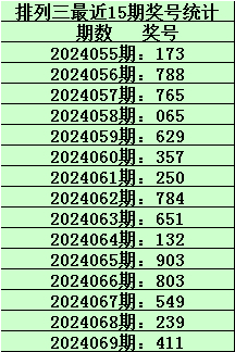 开奖回顾:排列三第2024069期开出奖号:411,其类型为:组三,直选形态为:偶奇奇、小小小、111路、冷冷温、合质质。