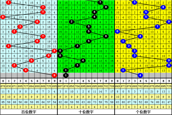 第二位杀号:第二位上期开出奖号为1,该位历史上奖号1开出了676次,最近100次第二位奖号出现1后,下期落号0-9次数从高到低分别为:号码9→14次,2、8→13次,4→12次,1、5→10次,0→9次,3、7→7次,6→5次。
