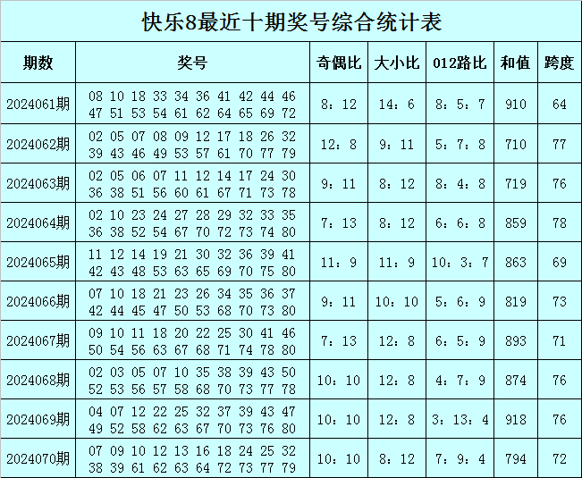 快乐8第2024071期综合分析