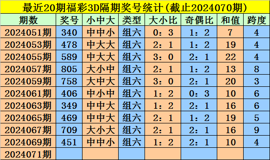 奖号类型判断:近期周四组六明显活跃,近十周开出8次,当前轮空1周,组三出现较少,本周四看好在组六。