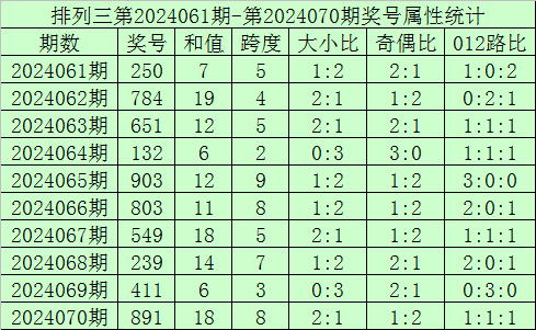 上期回顾:排列三第2024070期开奖号:891,奖号和值:18,奇偶比1:2,大小比2:1。