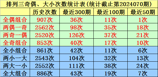 大小、奇偶分析:在连续40期奖号中,两大一小出现19期,当前遗漏0期、全大出现6期,当前遗漏13期、全小出现4期,当前遗漏1期、两小一大出现11期,当前遗漏2期,本期看好开出两小一大;两奇一偶有21次,目前遗漏0期、全奇有10次,目前遗漏10期、全偶有1次,目前遗漏39期、两偶一奇有18次,目前遗漏4次,本期预计出现两偶一奇。