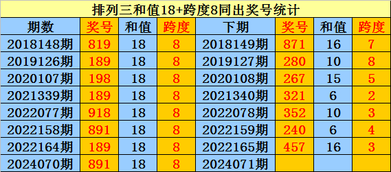 排列三近8次和值18+跨度8同出时奖号为:819、189、198、189、918、891、189、891,下期分别出现:871、280、267、321、352、240、457。