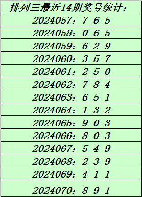 上期回顾:排列三第2024070期奖号:891。和值18,跨度8。