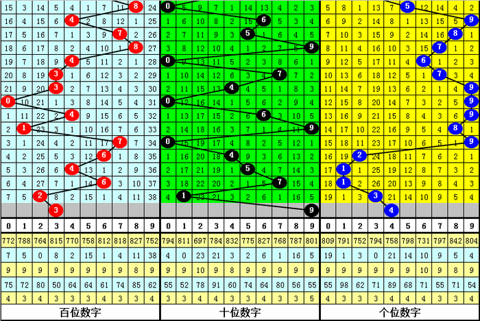 百个位合:前10期百个位两码合开出:0、2、9、3、9、6、8、5、7、5,其中百个位两码合012路比为5:1:4,奇偶比为6:4,本期看好百个位两码合开出1路号,参考两码合1、5、7。