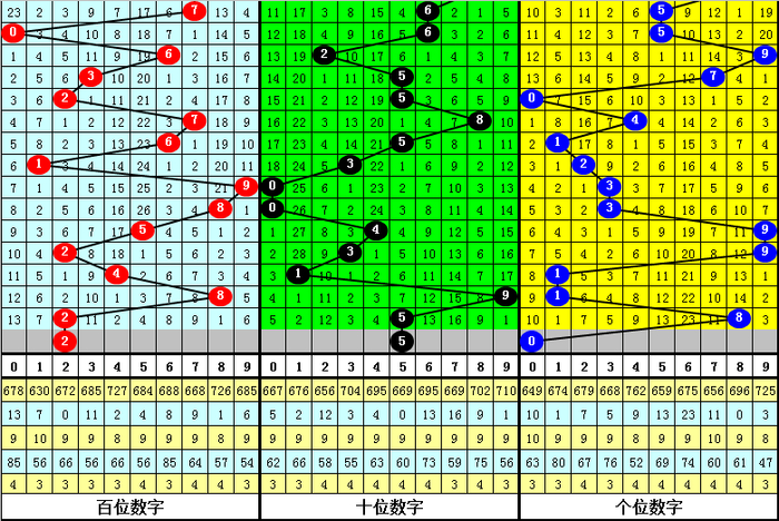 在第072期历史同期开奖中,号码0-9出现频次从高到低分别为:号码9→12次;号码0、2、4→7次;号码7→6次;号码8→5次;号码3→4次;号码1、5、6→3次。一般来说,表现最热的号码:0249中至少出现1个奖号。同时奖号不会全部出现在表现最冷的号码中。
