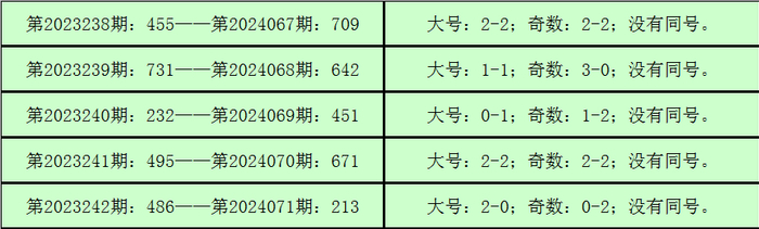 统计3D历史上已开出的奖号发现,在连续5期开奖号码中:3D在第2023238期-第2023242期分别开出奖号:455-731-232-495-486。