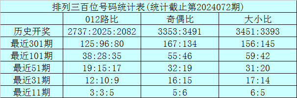 上期回顾:排列三第2024072期奖号为:341。奖号形态组六,大小比0:3,奇偶比2:1,012路1:2:0。