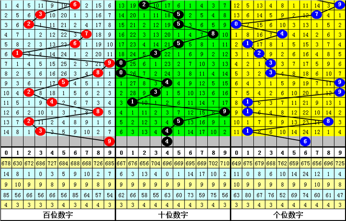 近期百位大号表现较冷,目前连续走冷2期,本期重点关注大号回补;该位奇号走势相对较冷,上期回补之后,本期预计连续开出奇号。百位本期杀号:0235,胆码关注:169。