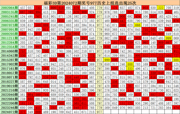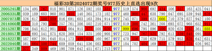 上期回顾:福彩3D第2024072期开出奖号977。