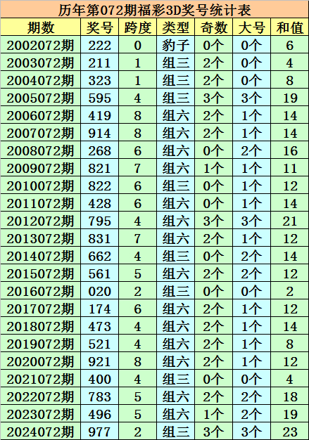 在以上奖号中奖,历年第073期福彩3D出现1次豹子,出现3次组三,出现18次组六。组六开出比例较高,本期继续关注组六。