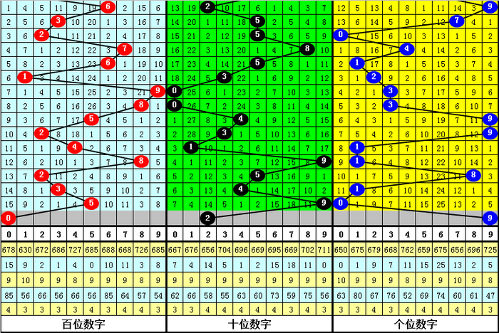 号码012路分析:在历年第074期开奖中,号码012路总比例为22:18:17,其中0路号码断档5期,1路号码断档7期,2路号码断档7期,本期012路比参考2:0:1。