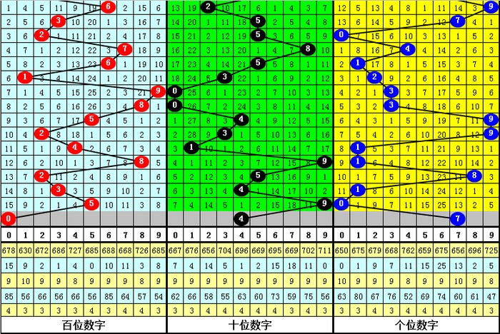 百位走势:近10期在1-9之间出号,跨度为9点,出号比较分散,上期奖号为5,上升2点,本期预计该位走小。另外近10期该位大小比为5:5,持平,本期预计出现小号,关注号码0。