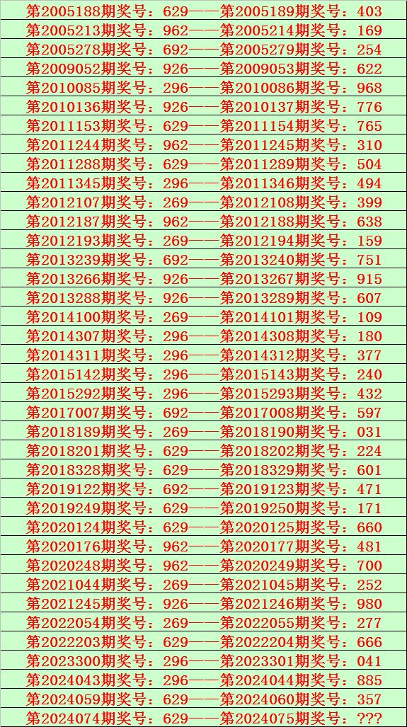 排列三第2024074期开出奖号629,该号码历史上组选出现38次,前37次开出之后期下期奖号为:403、169、254、622、968、776、765、310、504、494、399、638、159、751、915、607、109、180、377、240、432、597、031、224、601、471、171、660、481、700、252、980、277、666、041、885、357,详见下表: