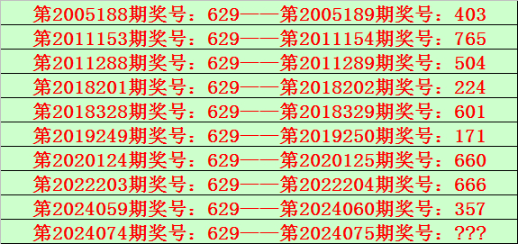 排列三第2024074期开出奖号629,该号码直选类型历史上出现了10次,前9次开出之后期下期奖号为:403、765、504、224、601、171、660、666、357,见下表: