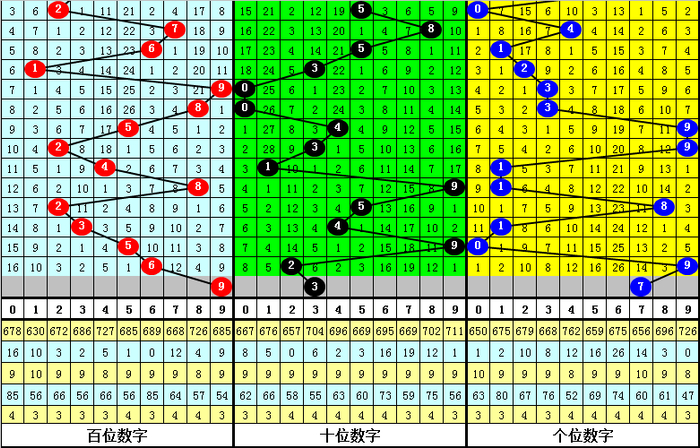 目前百位最冷号码为0,当前遗漏16期,该号码历史最大遗漏为85期,本期百位防号码0解冻。